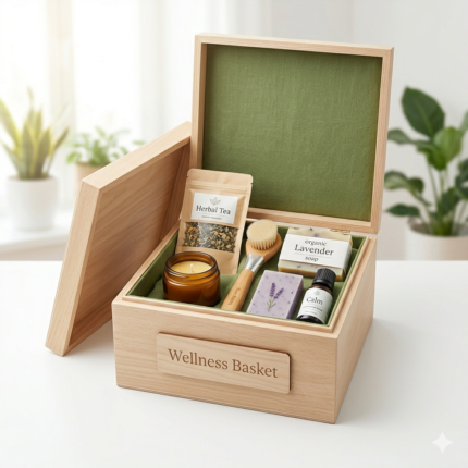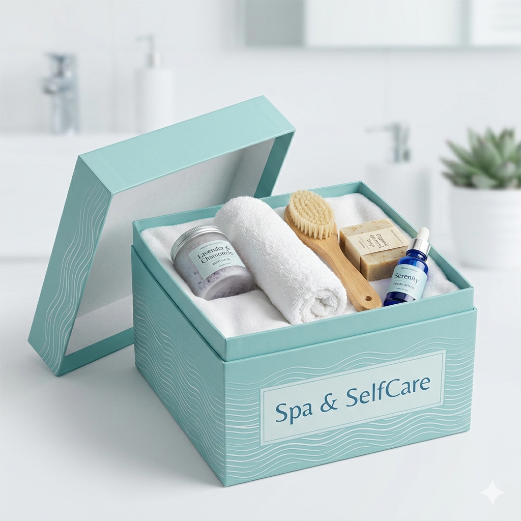 A luxurious self-care gift box featuring relaxing spa essentials designed to promote calm, rejuvenation, and a soothing at-home spa experience.